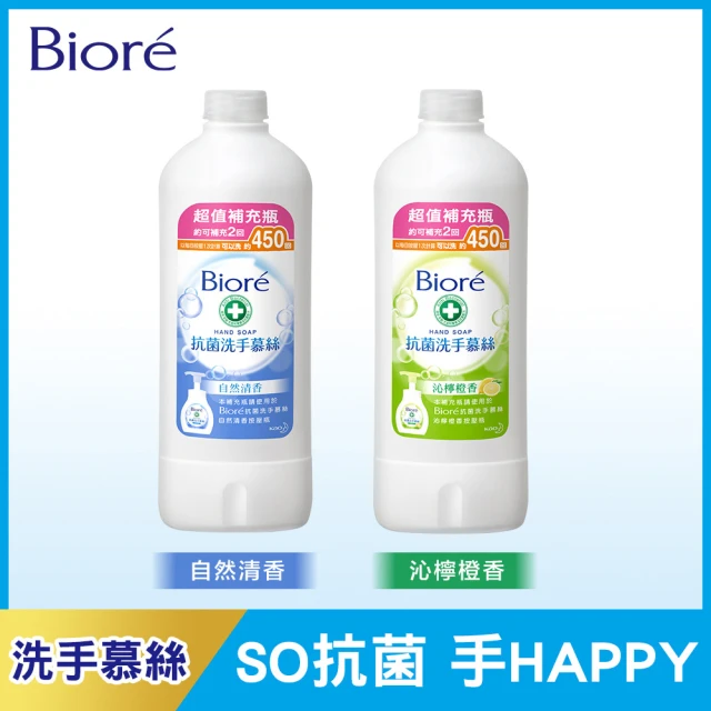 Biore 蜜妮 抗菌洗手慕絲 補充瓶450mlX4入(沁檸橙香/自然清香)