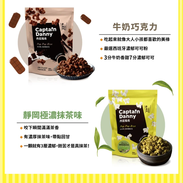 丹尼船長 米米花有甜有鹹組100gx4包組(甜鹹各選兩口味 純米製非油炸烘烤爆米花零食)