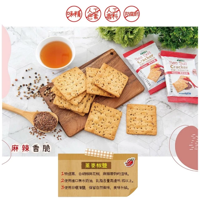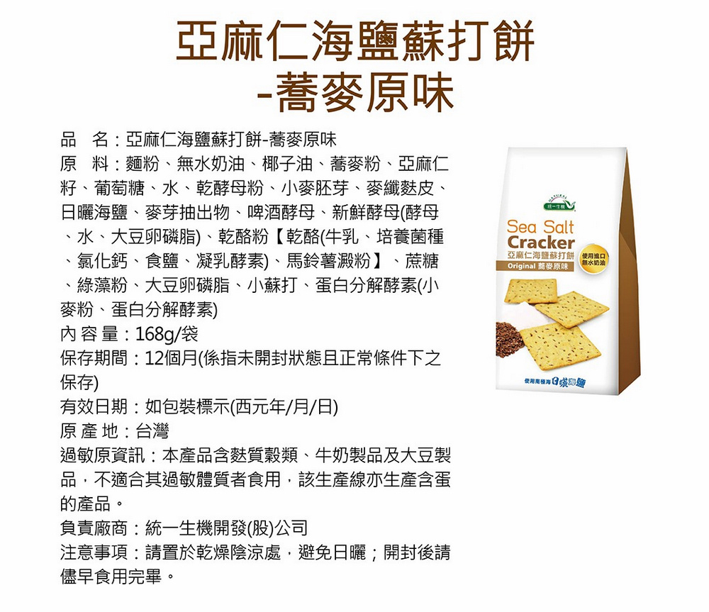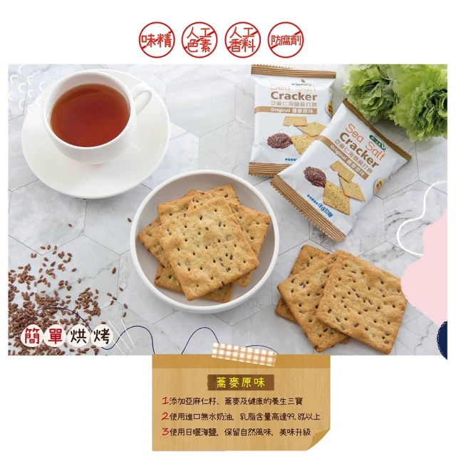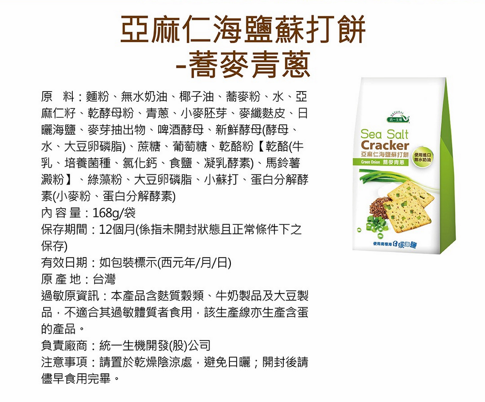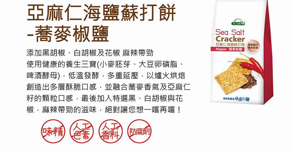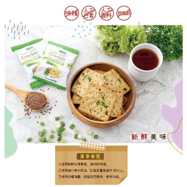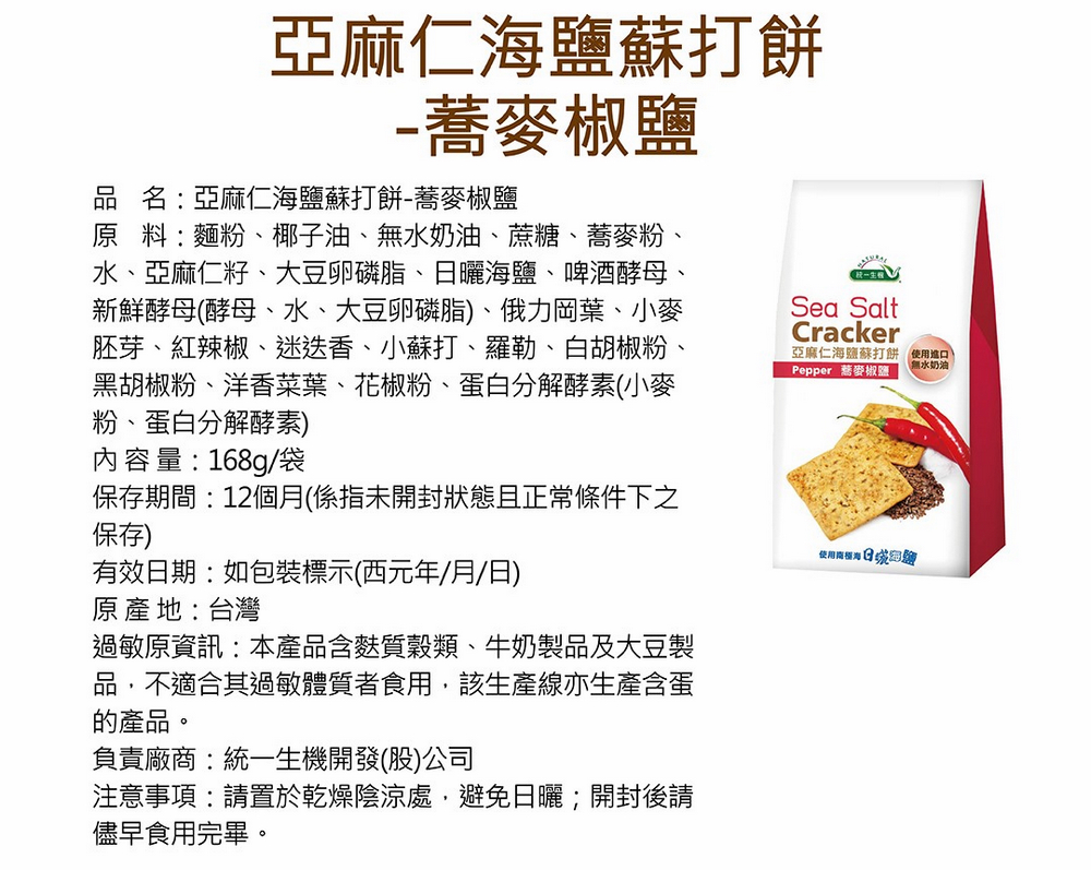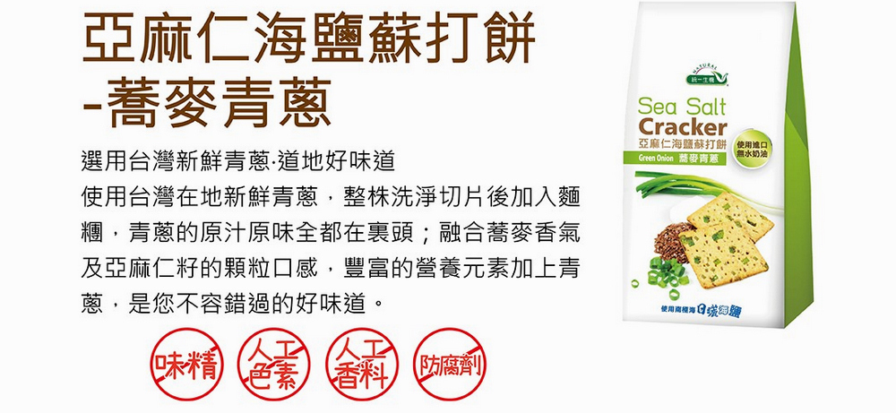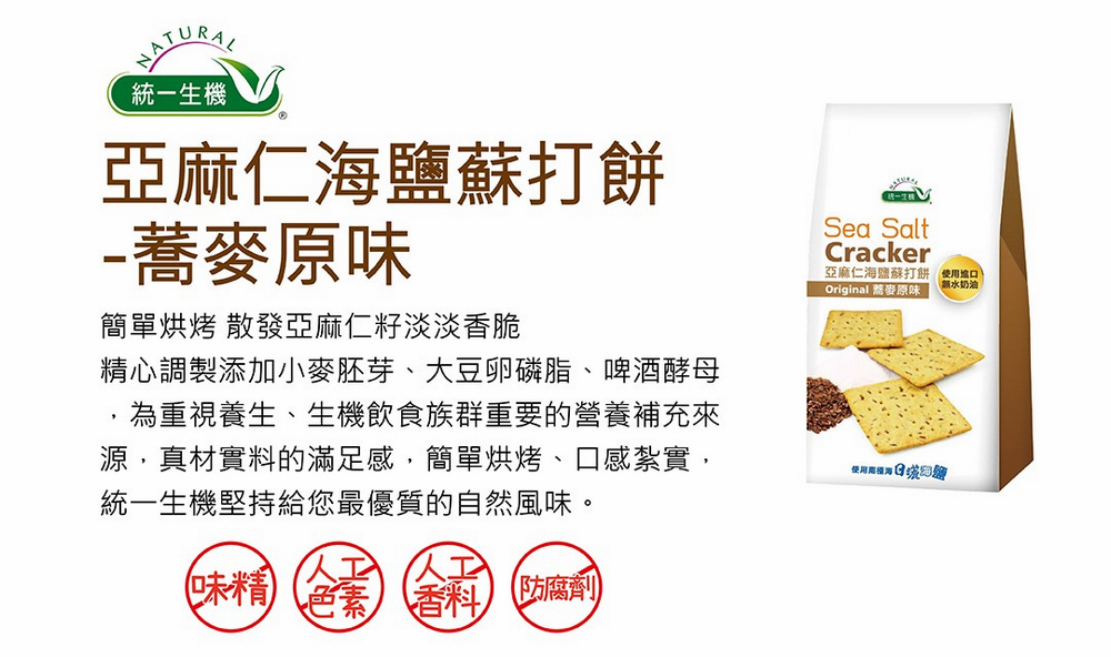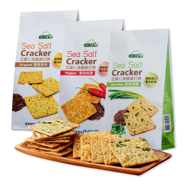 統一生機 亞麻仁海鹽蘇打餅x3袋(任選蕎麥/青蔥/椒鹽/21gx8包/袋) 共有 9 則評價