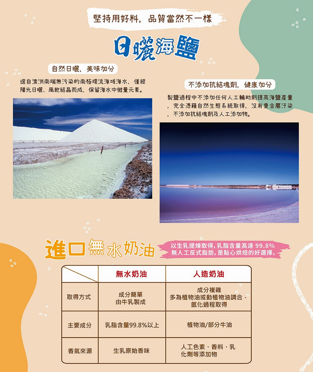 - 真材實料、簡單烘烤、口感紮實