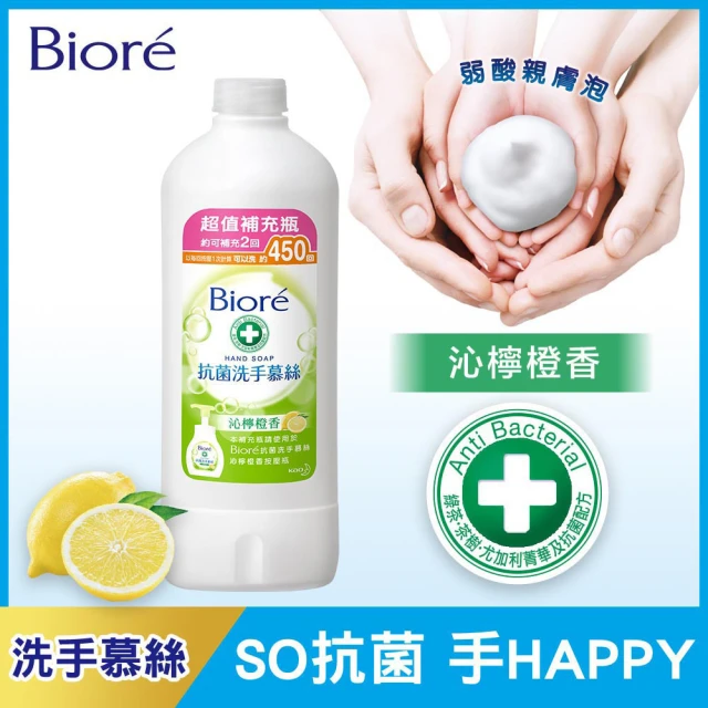 Biore 蜜妮 抗菌洗手慕絲 補充瓶450mlX4入(沁檸橙香/自然清香)